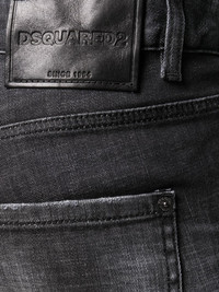 distressed-effect logo-patch denim jeans Double up your denim collection, adding this distressed effect pair to the mix. With a Dsquared2 logo patch to the rear, selecting what to wear just became effortlessly easy. Walk this way. Imported Composition Outer: Calf Leather 100%, Cotton 98%, Spandex/Elastane 2% Lining: Polyester 65%, Cotton 35% SIZE & FIT Model measurements Height 5 ft 9 in(1.74 m) Bust/Chest 32.28 in(82 cm) Hips 35.82 in(91 cm) Waist 24.01 in(61 cm) FittingInformation This piece fits true to size. We recommend you get your regular size Cut for a slim fit Made with a mid-weight stretch fabric Washing instructions Machine Wash