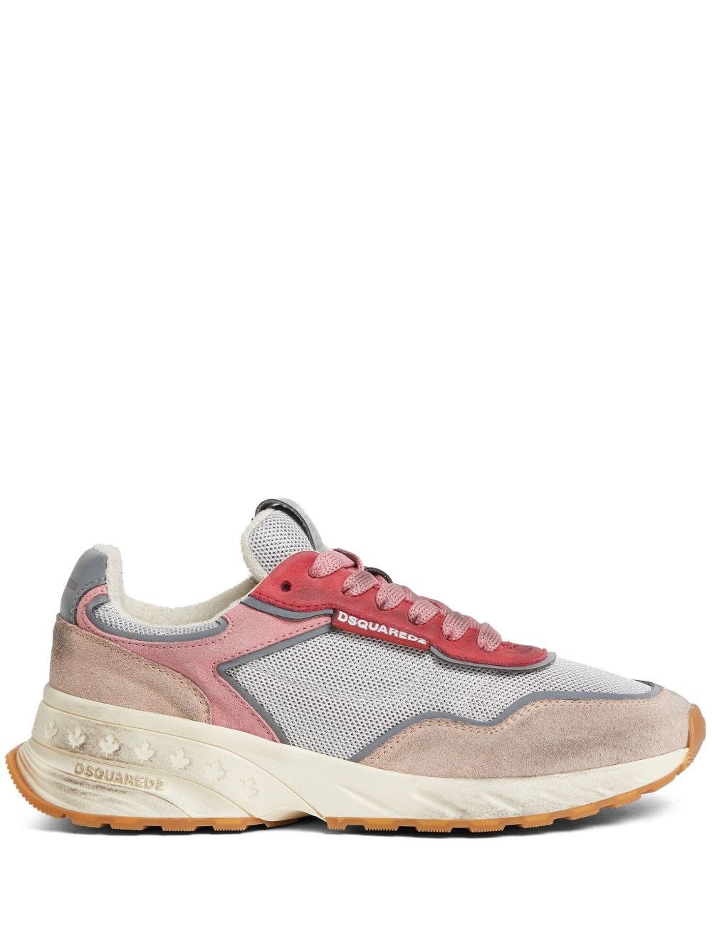 distressed-finish sneakers Highlights - Rose pink/multicolour - Panelled design - Mesh panelling - Distressed finish - Front lace-up fastening - Contrasting branded heel counter - Embossed logo to the side - Mini logo tag - Logo patch at the tongue - Round toe - Branded insole - Rubber sole Made in Italy Composition Leather 100%