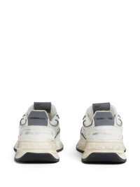 distressed-finish sneakers Highlights - White - Panelled design - Mesh panelling - Leather trim - Distressed finish - Front lace-up fastening - Contrasting branded heel counter - Logo patch at the tongue - Mini logo tag - Round toe - Branded insole - Chunky rubber sole Made in Italy Composition Outer: Polyester 45%, CALFSKIN 40%, Polyurethane 15% Lining: Cotton 60%, CALFSKIN 30% Sole: Synthetic Rubber 100%