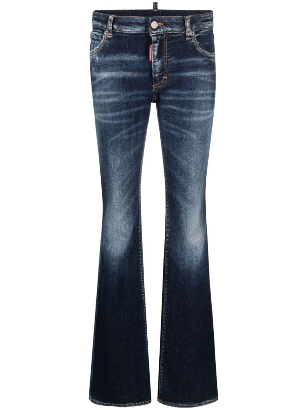 distressed flared jeans Rendered in a dark shade of blue, these Dsquared2 jeans are made from stretch cotton denim in Italy and cut to a timeless bootcut silhouette. The pair is emblazoned with distressed accents throughout as a nod to the brand's penchant for streetwear-inspired styles. Highlights - Dark blue - Stretch-cotton - Denim - Stonewashed - Distressed effect - Internal leopard-print thong detail - Leather logo patch - Mini logo tag - Contrast stitching - Belt loops - Front button and zip fastening - Mid-rise - Flared hem - Classic five pockets Made in Italy Composition Outer: Calf Leather 100%, Cotton 98%, Elastane 2% Lining: Polyester 65%, Cotton 35% SIZE & FIT Model measurements Height 5 ft 11 in(1.8 m) Bust/Chest 34.25 in(87 cm) Hips 35.82 in(91 cm) Waist 24.8 in(63 cm) Washing instructions Machine Wash