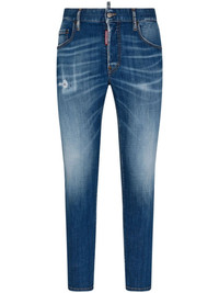 distressed skinny jeans Dsquared2 is lauded for its denim expertise, as demonstrated by these skinny jeans. They’re cut from blue stretch-denim and enhanced with whiskering, fading and rips that lend a love-worn look. Highlights - Indigo blue - Stretch-cotton - Denim - Whiskering effect - Faded effect - Logo patch to the rear - Belt loops - Concealed fly and button fastening - Classic five pockets - Skinny cut Made in Italy Composition Cotton 98%, Spandex/Elastane 2% Lining: Polyester 65%, Cotton 35% Washing instructions Read Manufacturer Guidelines