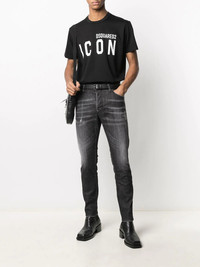 distressed slim-fit jeans Your denim collection is due a refresh. Make sure to include these washed black distressed slim-fit jeans from Dsquared2. It's not every day you find the perfect pair. Imported Composition Outer: Calf Leather 100%, Cotton 98%, Spandex/Elastane 2% Lining: Polyester 65%, Cotton 35% Washing instructions Machine Wash