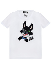 dog print T-shirt Highlights - White - Cotton - Dog print to the front - Crew neck - Short sleeves - Straight hem Made in Italy Composition Cotton 100% Washing instructions Read Manufacturer Guidelines