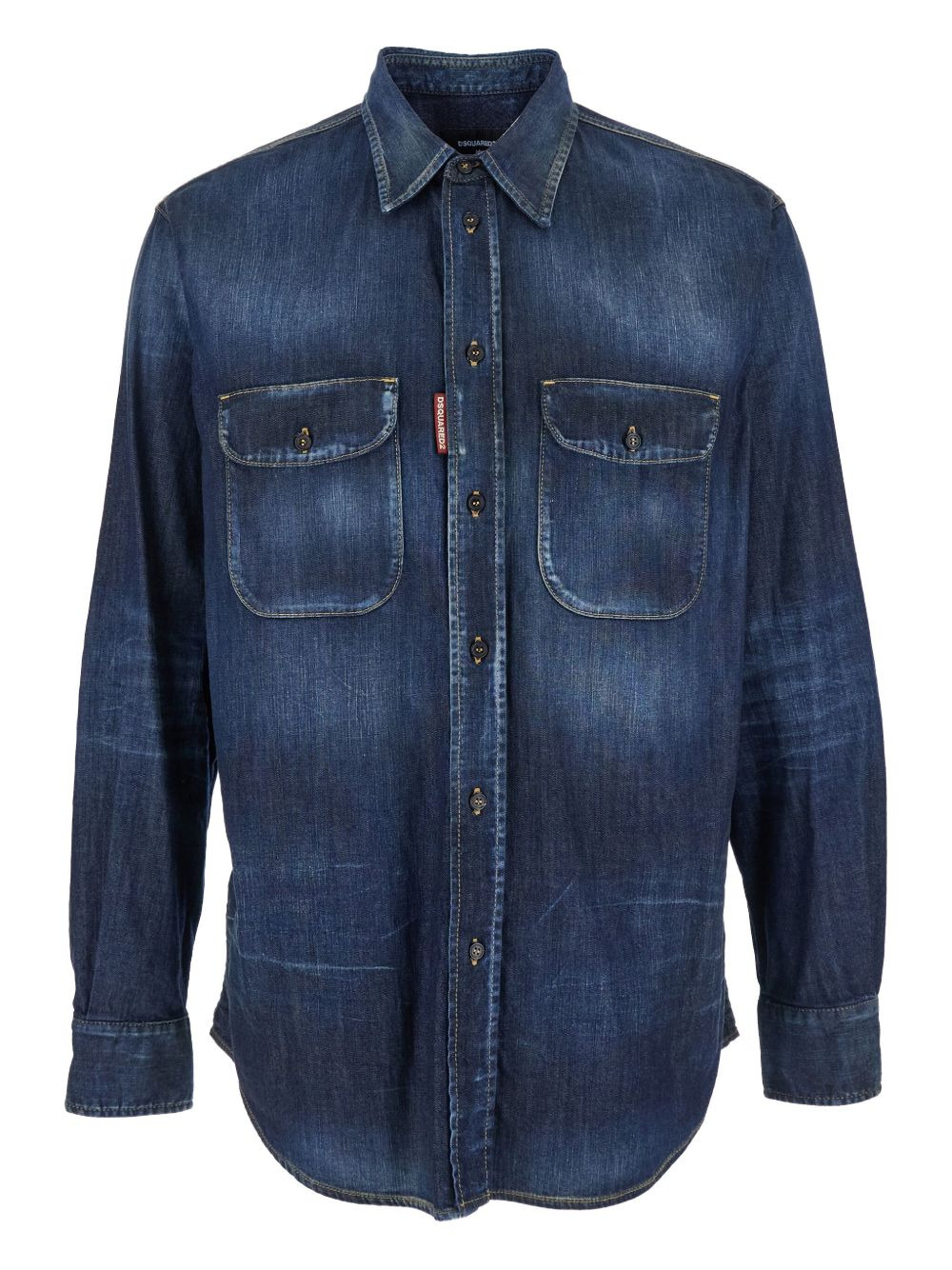 double-pockets elbow-patched denim shirt Highlights Imported Composition Fabric 100%