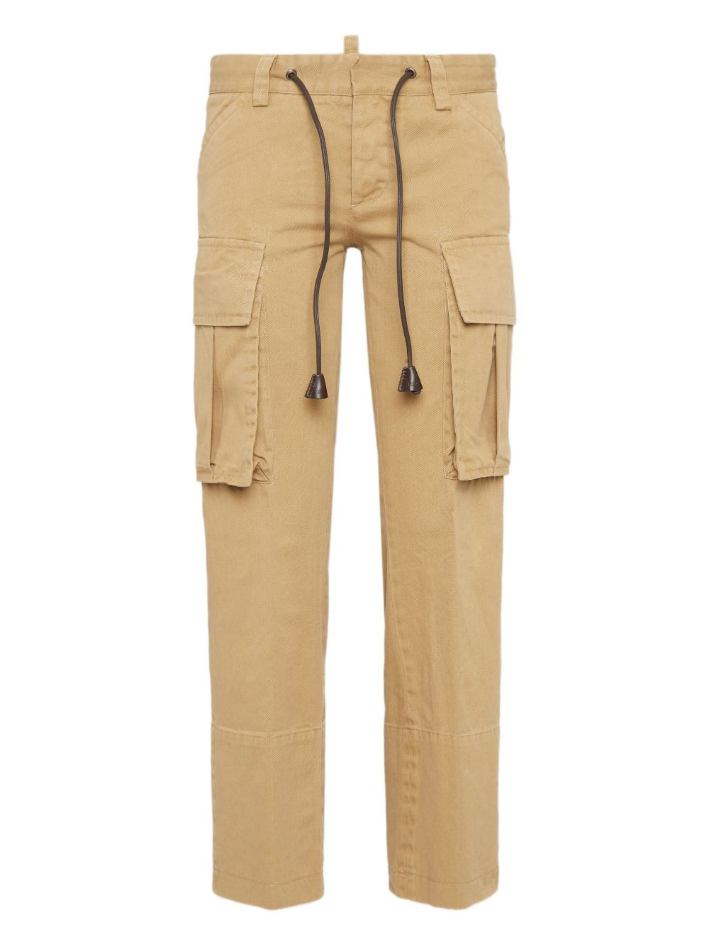 drawstring trousers Highlights - Sand beige - Hook and zip fly fastening - Two side slit pockets - Two side cargo pockets - Two rear flap pockets Made in Italy Composition Fabric 100% Washing instructions Read Manufacturer Guidelines