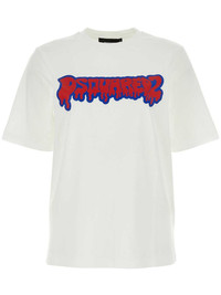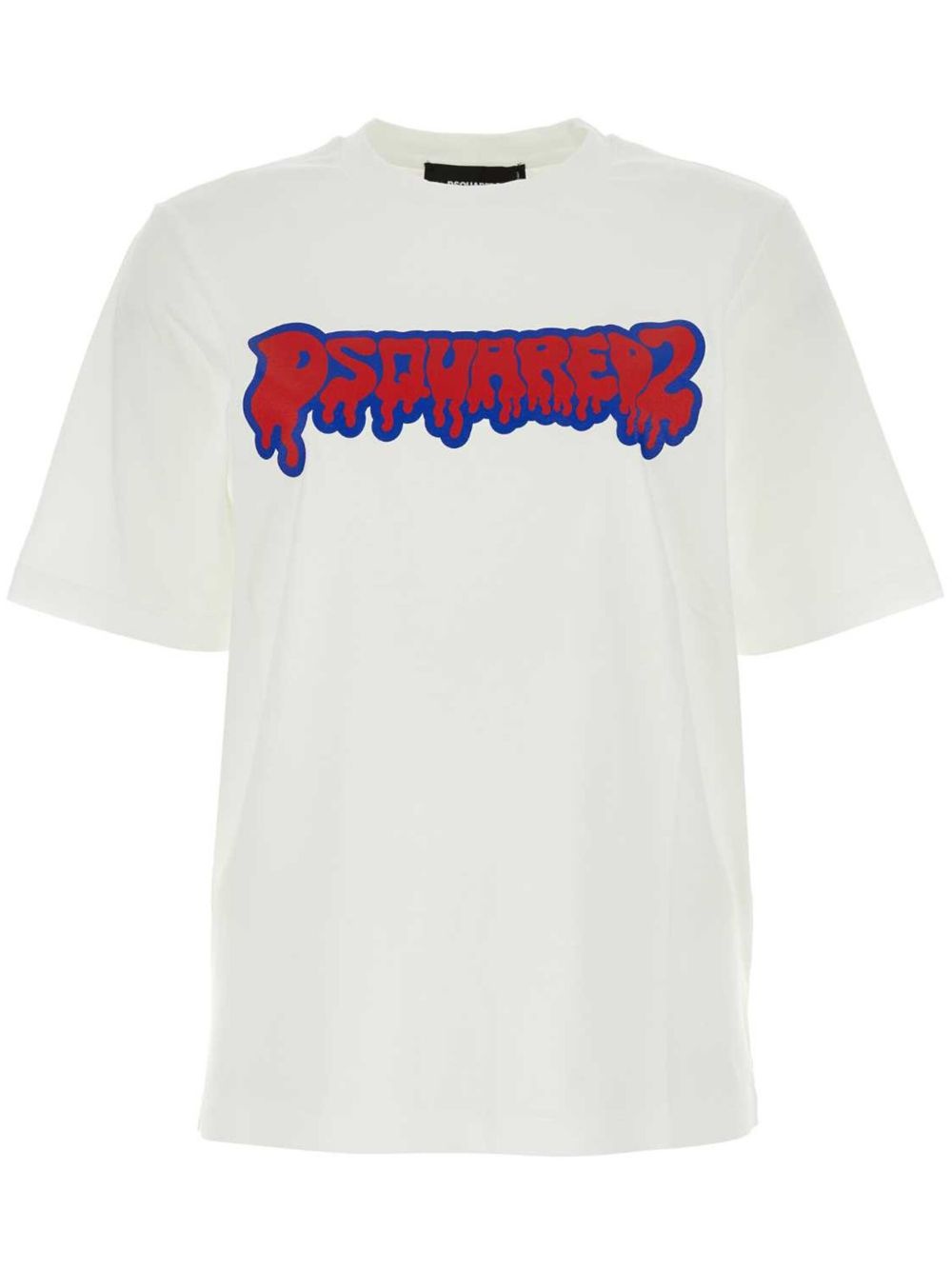 Easy Fit cotton T-shirt This Dsquared2 T-shirt is cut from pure cotton to a classic crew-neck silhouette with a boxy shape. Red and blue logo lettering across the front adds a touch of branding. Highlights - White - Cotton - Jersey texture - Logo print at the chest - Crew neck - Short sleeves - Straight hem Made in Italy Composition Cotton 100% Washing instructions Read Manufacturer Guidelines