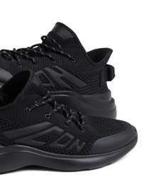 embossed-logo sneakers Highlights - Black - Knitted upper - Embossed logo to the side - Front lace-up fastening - Logo pull-tab at the heel - Round toe - Branded insole - Chunky rubber sole Imported Composition Outer: Polyester 85%, Polyurethane 15% Sole: Rubber 100% Lining: Polyester 100%