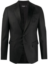 embroidered logo blazer Walk into that meeting as you mean it... Boasting a virgin wool construction, this embroidered logo blazer from DSQUARED2 will give you that extra dose of confidence that you need to close that business. Feeling powerful? Featuring notched lapels, a front button fastening, long sleeves, a chest pocket, front flap pockets and a double vent to the rear. Made in Italy Composition Outer: Virgin Wool 65%, Silk 35% Lining: Cotton 100%, Polyester 100% SIZE & FIT Model measurements Height 6 ft 2 in(1.87 m) Bust/Chest 38.18 in(97 cm) Hips 36.61 in(93 cm) Waist 29.13 in(74 cm) FittingInformation This piece fits true to size. We recommend you get your regular size Cut for a slim fit Made with a mid-weight non-stretch fabric Washing instructions Dry Clean Only