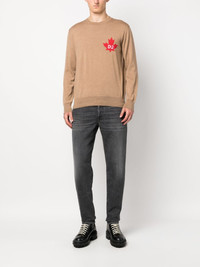 fine-knit crew-neck jumper Highlights - Almond beige - Virgin wool - Intarsia-knit logo - Ribbed edge - Crew neck - Long sleeves - Straight hem Made in Italy Composition Virgin Wool 100% SIZE & FIT Model measurements Height 6 ft 2 in(1.88 m) Bust/Chest 36.61 in(93 cm) Hips 37.79 in(96 cm) Waist 28.74 in(73 cm) FittingInformation Designed for a regular fit, offering a comfortable loose fit throughout the body Made with a midweight knit, this piece offers some stretch This piece fits true to size – take your usual size Washing instructions Dry Clean Only