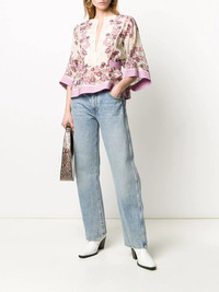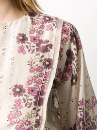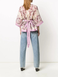 floral print blouse There's never a wrong time for florals. DSQUARED2 presents this ecru and fuchsia cotton floral print blouse boasting a tie waist. Fresh and feminine. Featuring a round neck, a slit at the chest, three-quarter length sleeves and a tie waist. Made in Italy Composition Outer: Cotton 77%, Silk 23% Lining: Cotton 100% Washing instructions Hand Wash