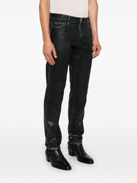 garment-dyed jeans Highlights - Black - Cotton - Denim - Garment dyed - Button fly fastening - Low-rise - Belt loops - Classic five pockets - Logo tag - Logo-debossed patch to the rear - Straight leg Made in Italy Composition Outer: Cotton 100%, Calf Leather 100% Lining: Polyester 65%, Cotton 35% SIZE & FIT Model measurements Height 6 ft 2 in(1.87 m) Bust/Chest 37.79 in(96 cm) Hips 37.79 in(96 cm) Waist 30.31 in(77 cm) FittingInformation Designed for a slim fit, these jeans offer a comfortable fit that sits just away from the leg Sturdy and hard-wearing, this denim piece offers no stretch