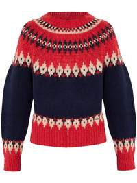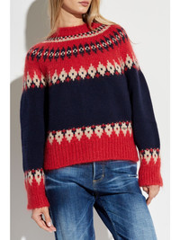 geometric-pattern sweater Highlights - Red/white/blue - Long sleeves - Geometric print - Ribbed cuffs and hem - Straight hem Made in Italy Composition Fabric 75%, Mohair 12%, Polyamide 8%, Wool 5%