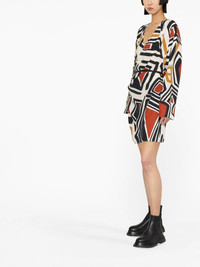 geometric-print wrap dress Dsquared2 exhibits its modern style with this wrap dress for AW22. Decorated with an all-over geometric print, this design is elevated by a tied waist for a contemporary finish. Made in Italy Composition Polyester 100% SIZE & FIT Model measurements Height 5 ft 10 in(1.78 m) Bust/Chest 29.92 in(76 cm) Hips 34.64 in(88 cm) Waist 23.62 in(60 cm) FittingInformation This piece fits true to size. We recommend you get your regular size Cut for a loose fit. Comes with an adjustable belt for a flexible fit at the waist Made with a mid-weight non-stretch fabric Washing instructions Dry Clean Only