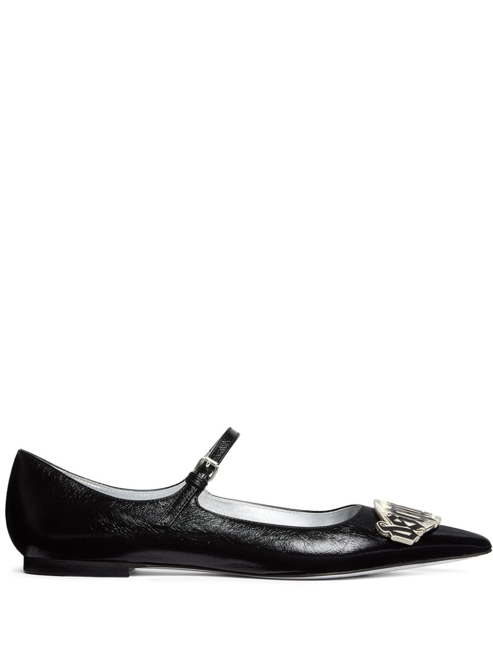 Gothic leather ballerina shoes Highlights - Black - Leather - Logo plaque - Pointed toe - Branded leather insole - Front buckle fastening - Flat sole Made in Italy Composition Lining: Calf Leather 100% Sole: Leather 100% Outer: Lamb Skin 100%