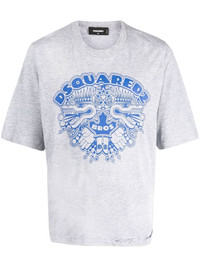 graphic-logo print T-shirt Highlights - Light grey - Cotton blend - Logo print to the front - Graphic print to the front - Round neck - Short sleeves - Straight hem Made in Italy Composition Cotton 88%, Viscose 12% SIZE & FIT Model measurements Height 6 ft 1 in(1.85 m) Bust/Chest 33.46 in(85 cm) Hips 38.18 in(97 cm) Waist 31.49 in(80 cm) FittingInformation This piece fits true to size. We recommend you get your regular size Cut for a loose fit Made with a mid-weight fabric Washing instructions Machine Wash
