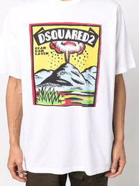 graphic-print cotton T-shirt white/multicolour cotton graphic print at the chest logo print at the chest crew neck short sleeves straight hem Made in Italy Composition Cotton 100% SIZE & FIT Model measurements Height 6 ft 2 in(1.87 m) Bust/Chest 38.18 in(97 cm) Hips 36.61 in(93 cm) Waist 29.13 in(74 cm) FittingInformation This piece fits true to size. We recommend you get your regular size Cut for a loose fit Made with a mid-weight fabric Washing instructions Dry Clean Only