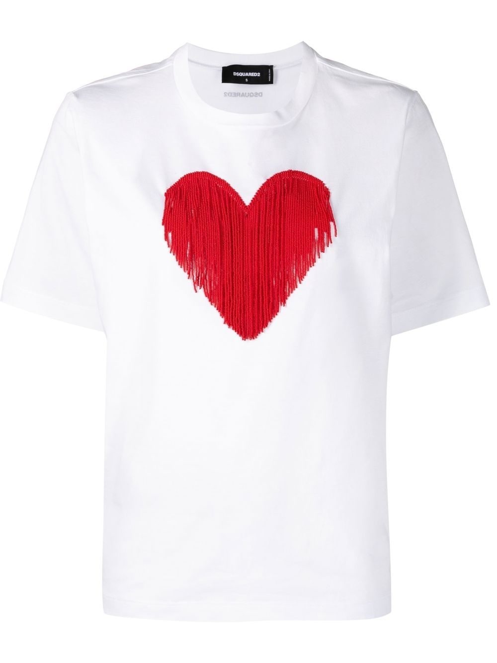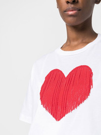 graphic-print T-shirt white/red cotton heart print fringe detailing round neck short sleeves Made in Italy Composition Cotton 100% SIZE & FIT Model measurements Height 5 ft 10 in(1.77 m) Bust/Chest 29.92 in(76 cm) Hips 34.25 in(87 cm) Waist 23.62 in(60 cm) FittingInformation Designed for a relaxed fit, this piece allows for comfort and movement when worn Made from a midweight non-stretch fabric, this piece offers minimal elasticity when worn This piece fits true to size – take your usual size Washing instructions Hand Wash