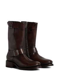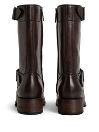 Harley leather boots Highlights - Dark brown - Calf leather - Round toe - Decorative buckle detailing - Debossed logo to the side - Leather insole - Leather outsole - Side zip fastening Made in Italy Composition Outer: Calf Leather 100% Sole: Leather 50%, Elastodiene 50% Lining: Calf Leather 100%