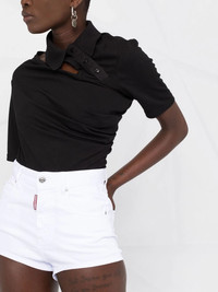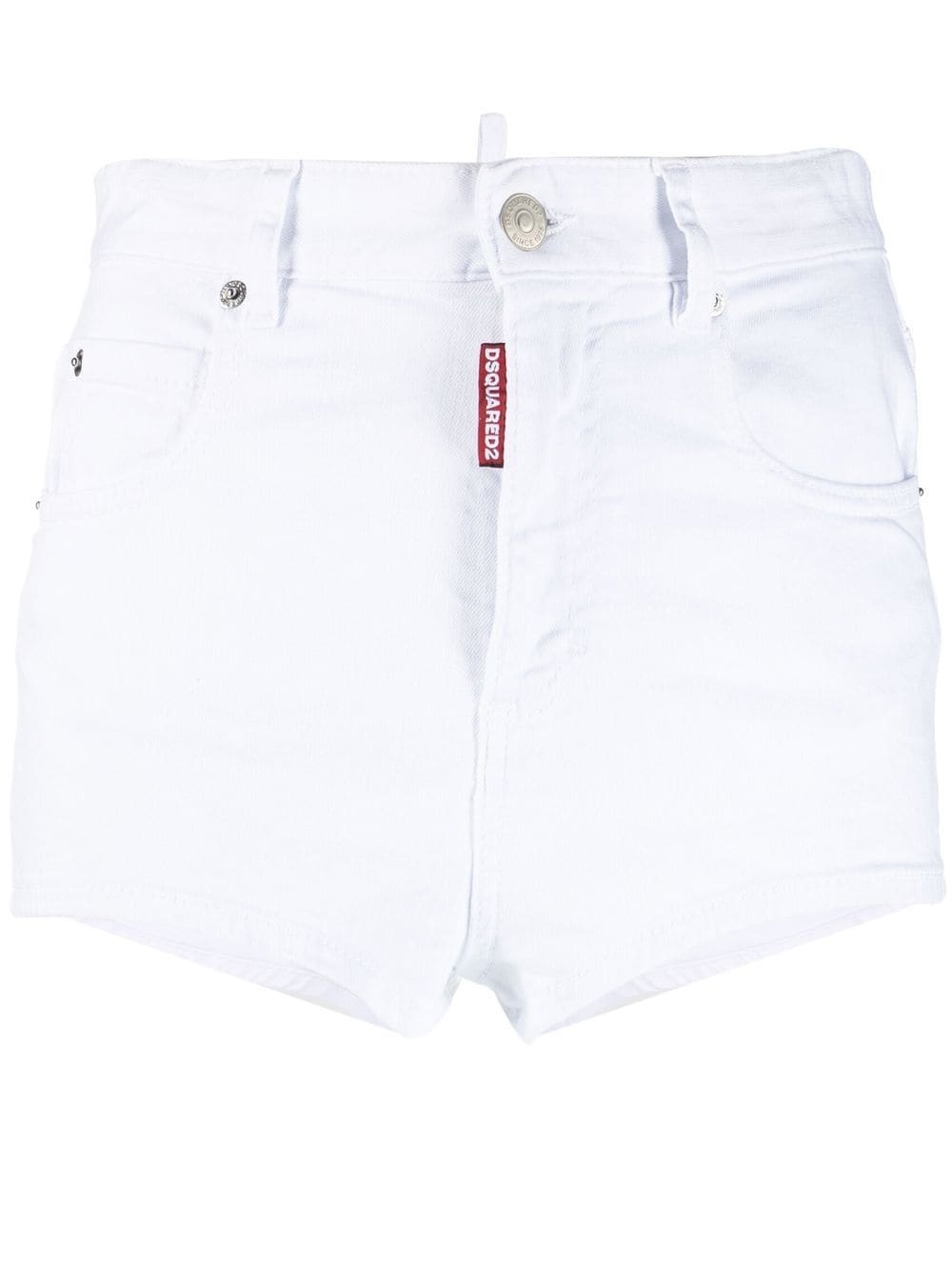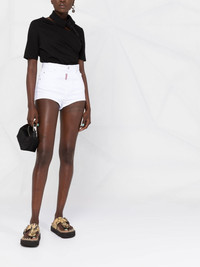 Honey logo-patch denim mini shorts Known for their notable denim, Dsquared2 present these white Honey logo-patch hot pants for SS22. Crafted in Italy from a cotton construction, they feature the brand's signature red and white logo tab at the fly. Made in Italy Composition Outer: Cotton 92%, Polyester 5%, Spandex/Elastane 3% Lining: Cotton 100% SIZE & FIT Model measurements Height 5 ft 9 in(1.75 m) Bust/Chest 30.7 in(78 cm) Hips 34.64 in(88 cm) Waist 22.83 in(58 cm) FittingInformation This piece fits true to size. We recommend you get your regular size Cut for a slim fit Made with a mid-weight stretch fabric Washing instructions Machine Wash