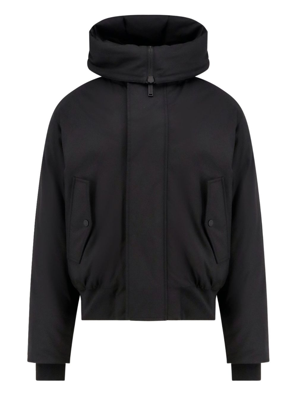 hooded bomber jacket Highlights - Black - High collar - Zip fastening - Welt pockets - Elasticated hem Imported Composition Lining: Polyamide 100% Outer: Polyester 100% Washing instructions Read Manufacturer Guidelines