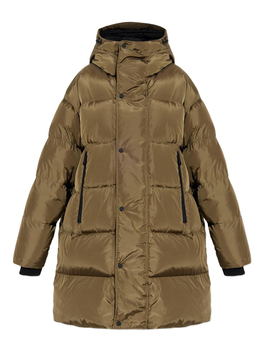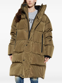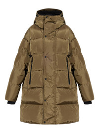 hooded puffer coat Highlights - Olive green - Quilted design - Hooded neckline - Zip fastening - Snap button placket - Long sleeves Imported Composition Outer: Polyester 100% Lining: Down 90%, Feather 10% Washing instructions Read Manufacturer Guidelines