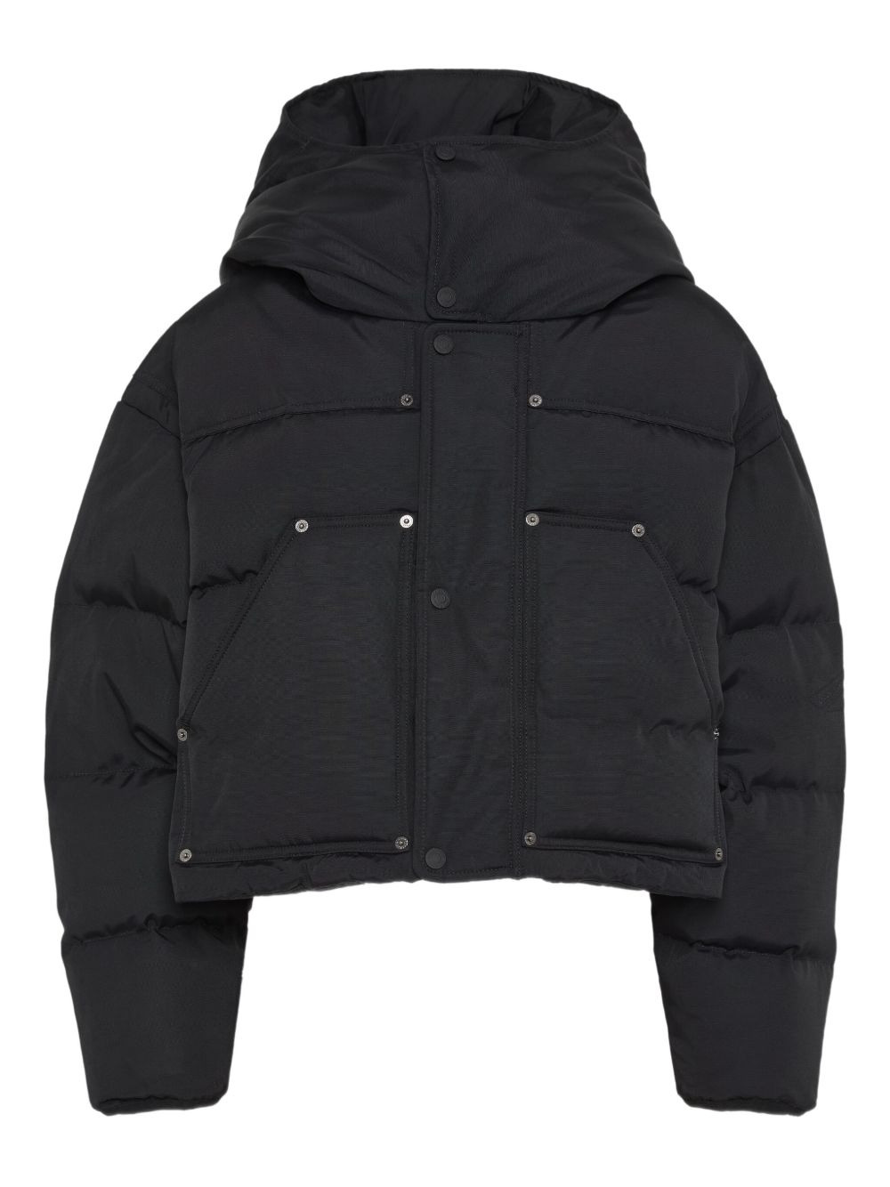hooded puffer jacket Highlights - Black - Front press-stud and zip fastening - Two front patch pockets - Slouchy hood - Drawstring hem Imported Composition Fabric 100% Washing instructions Read Manufacturer Guidelines