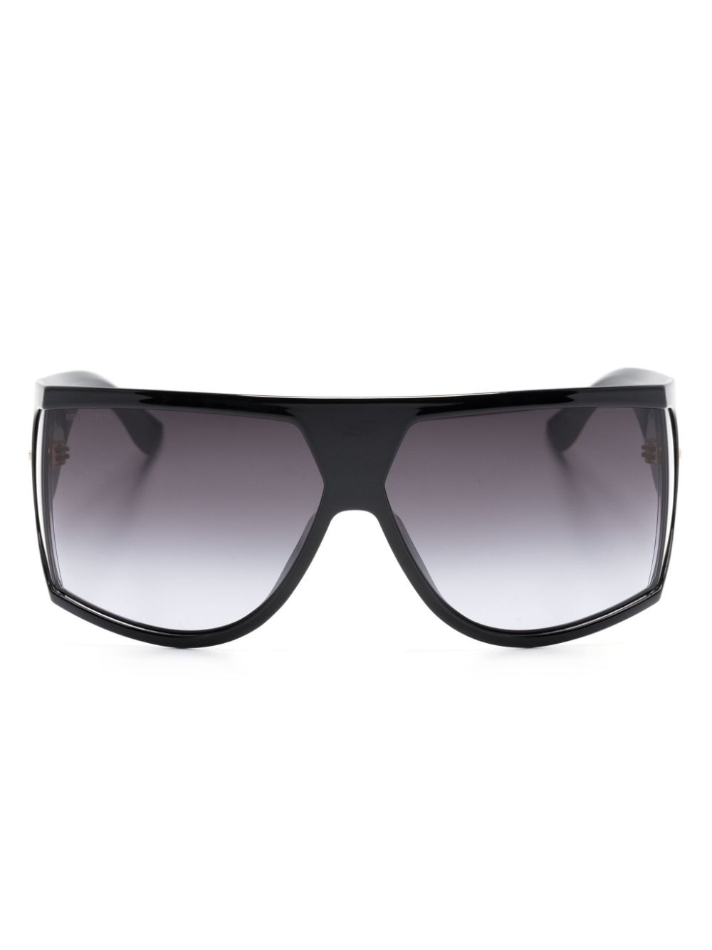 Hype shield-frame sunglasses Highlights - Black - Acetate - Shield frame - Gradient lenses - Logo plaque at the arm - Sculpted arms - Curved tips - These glasses come with a protective case. Imported Composition Acetate 100% SIZE & FIT Measurement Arm Length 4.52 in(11.5 cm) Bridge Width 0.43 in(1.1 cm) Lens Diameter 2.95 in(7.5 cm) WIDTH 5.7 in(14.5 cm)