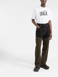 Ibra-print cotton T-shirt Zlatan Ibrahimović collaborates with Dsquared2 for SS22. This T-shirt arrives printed with bold lettering, giving a nod to the Milan football star. Imported Composition Cotton 100% SIZE & FIT Model measurements Height 6 ft 2 in(1.87 m) Bust/Chest 34.64 in(88 cm) Hips 35.43 in(90 cm) Waist 27.95 in(71 cm) Measurement CHEST 51.18 in(130 cm) SLEEVE LENGTH 11.41 in(29 cm) Shoulder Width 18.5 in(47 cm) FittingInformation This piece fits true to size. We recommend you get your regular size Cut for a relaxed fit Made with a mid-weight fabric Washing instructions Dry Clean Only