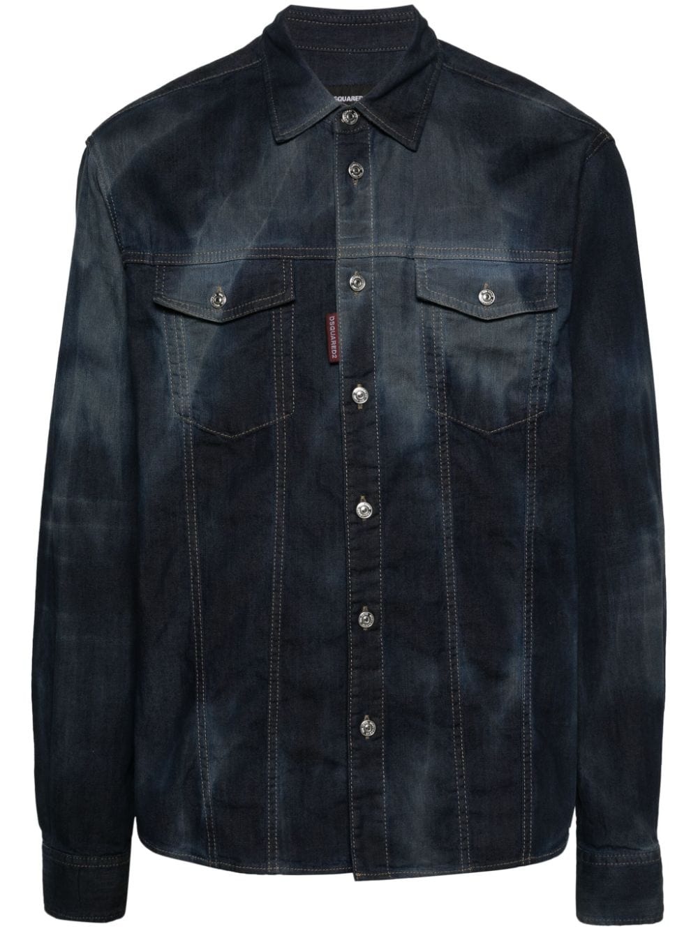 Icon denim shirt Highlights - Navy blue - Stretch-cotton - Washed denim - Classic collar - Two button-fastening chest pockets - Long sleeves with buttoned cuffs - Curved hem - Silver-tone logo lettering to the rear - Logo-engraved buttons - Front button fastening Made In Italy Composition Cotton 98%, Elastane 2% SIZE & FIT Model measurements Height 6 ft 2 in(1.87 m) Bust/Chest 36.22 in(92 cm) Hips 37 in(94 cm) Waist 27.95 in(71 cm) FittingInformation Designed for a regular fit, allowing for a comfortably loose fit throughout the body Constructed from stretch denim, this piece offers a stretch fit with durability This piece fits true to size – take your usual size Washing instructions Machine Wash