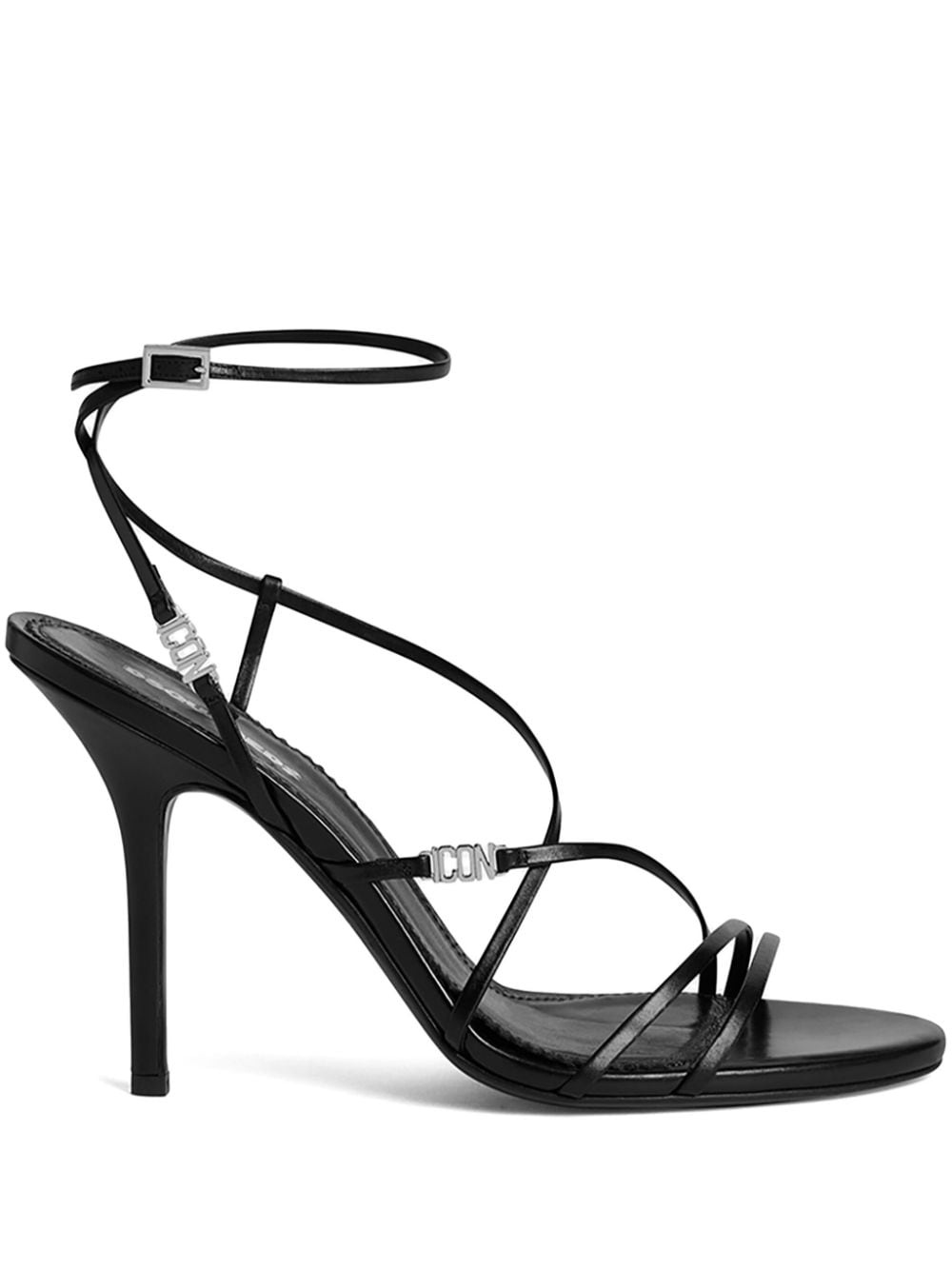 Icon Evening leather sandals Highlights - Black - Leather/calf leather - Signature icon lettering - Open toe - Buckle-fastening ankle strap - Branded leather insole - Stiletto heel - Leather sole Made in Italy Composition Sole: Leather 95%, Polyurethane 5% Lining: Goat Skin 100% Outer: Calf Leather 100%
