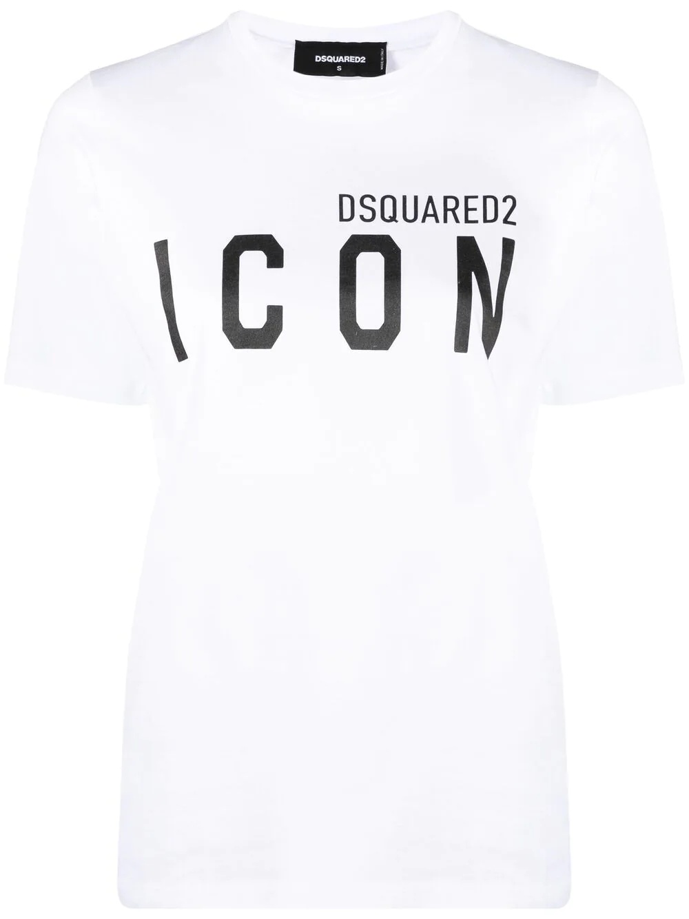 ICON logo T-shirt Be your own muse in this ICON logo T-shirt from DSQUARED2. Crafted in white cotton, this round neck tee is boldy emblazoned with a contrast black ICON print and logo to the front. Wear with pride. Featuring a printed logo to the front, a round neck and short sleeves. Imported Composition Cotton 100% SIZE & FIT Model measurements Height 5 ft 9 in(1.76 m) Bust/Chest 31.88 in(81 cm) Hips 35.43 in(90 cm) Waist 24.8 in(63 cm) Washing instructions Machine Wash