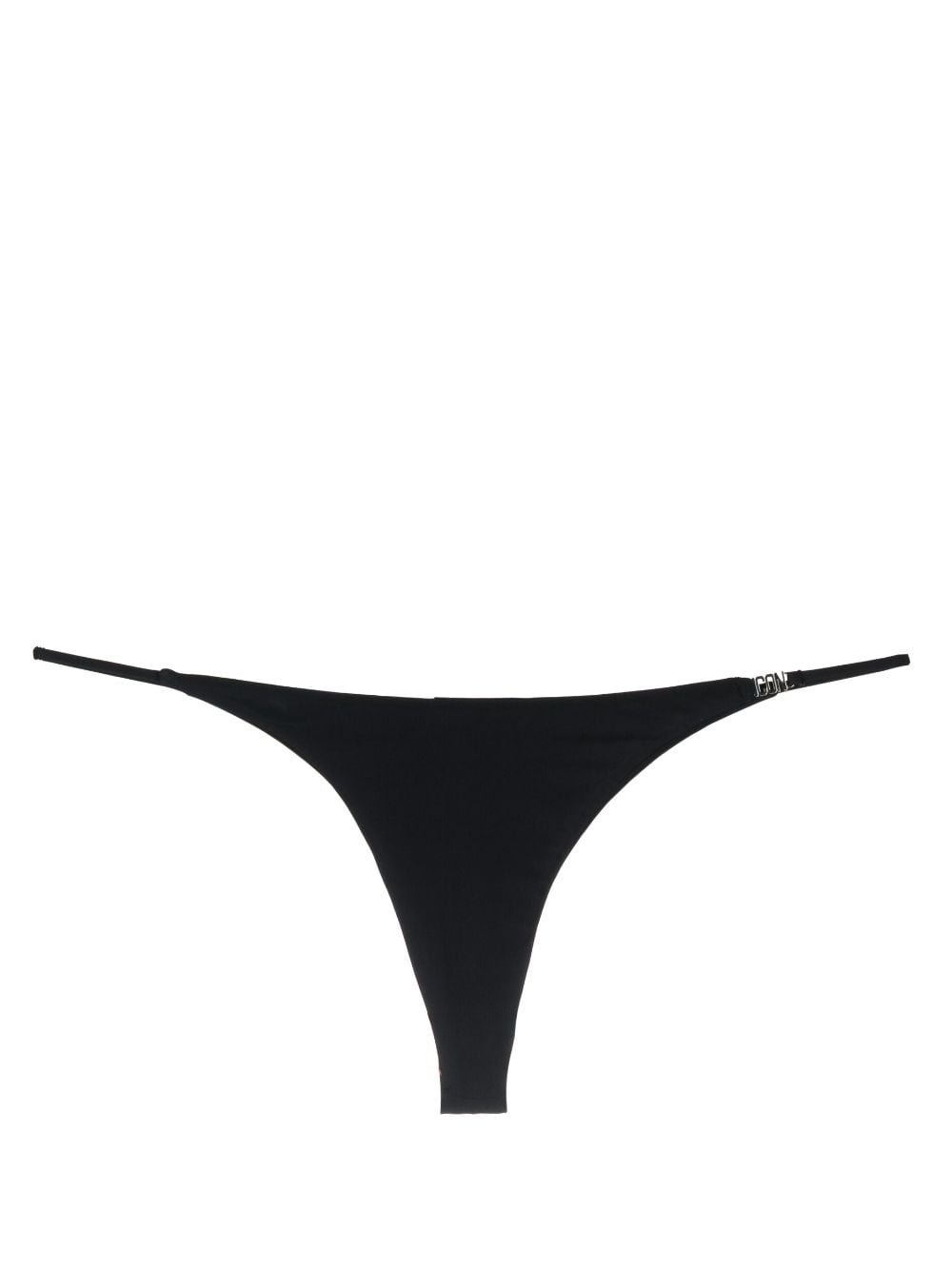 Icon-plaque bikini bottoms Highlights - Black - Stretch-design - Signature icon motif - Silver-tone logo plaque - Thong style - Thin straps - Be mindful to try on swimwear over your own garments. Made in Italy Composition Polyamide 80%, Spandex/Elastane 20% Washing instructions Hand Wash