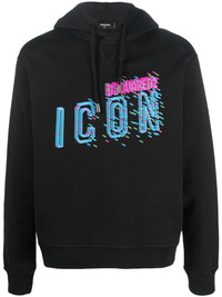 Icon-print cotton hoodie The Icon motif is a recurring feature throughout Dsquared2's collections. It adds a recognisable finish to this black cotton hoodie. Highlights - Black - Cotton - Graphic print to the front - Drawstring hood - Long sleeves Made in Italy Composition Cotton 100% Washing instructions Dry Clean Only