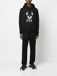 Icon-print cotton hoodie The Icon motif is a recurring feature throughout Dsquared2's collections. It adds a recognisable finish to this black cotton hoodie, accompanied by a dog graphic. Highlights - Black - Cotton - Graphic print to the front - Classic hood - Long sleeves Made in Italy Composition Cotton 100% SIZE & FIT Model measurements Height 6 ft 1 in(1.85 m) Bust/Chest 31.88 in(81 cm) Hips 33.07 in(84 cm) Waist 26.77 in(68 cm) FittingInformation Designed to be unstructured, offering a loose fit throughout Made from a midweight non-stretch fabric, this piece offers minimal elasticity when worn This piece fits true to size – take your usual size Washing instructions Dry Clean Only