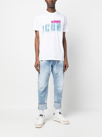 Icon-print cotton T-shirt The Icon motif is a recurring feature throughout Dsquared2's collections. It adds a recognisable finish to this white cotton tee. Highlights - White - Cotton - Graphic print to the front - Round neck - Short sleeves Made in Italy Composition Cotton 100% SIZE & FIT Model measurements Height 6 ft 1 in(1.85 m) Bust/Chest 31.88 in(81 cm) Hips 33.07 in(84 cm) Waist 26.77 in(68 cm) FittingInformation This piece fits true to size. We recommend you get your regular size Cut for a slim fit Made with a mid-weight fabric Washing instructions Dry Clean Only