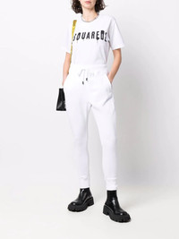 Icon-print track pants bright white/black cotton mid-rise elasticated drawstring waistband two side slit pockets ribbed cuffs Made in Italy Composition Outer: Cotton 100% Lining: Cotton 100% SIZE & FIT Model measurements Height 5 ft 9 in(1.76 m) Bust/Chest 33.07 in(84 cm) Hips 34.64 in(88 cm) Waist 25.59 in(65 cm) FittingInformation This piece fits true to size. We recommend you get your regular size Cut for a slim fit Made with a mid-weight fabric Washing instructions Machine Wash