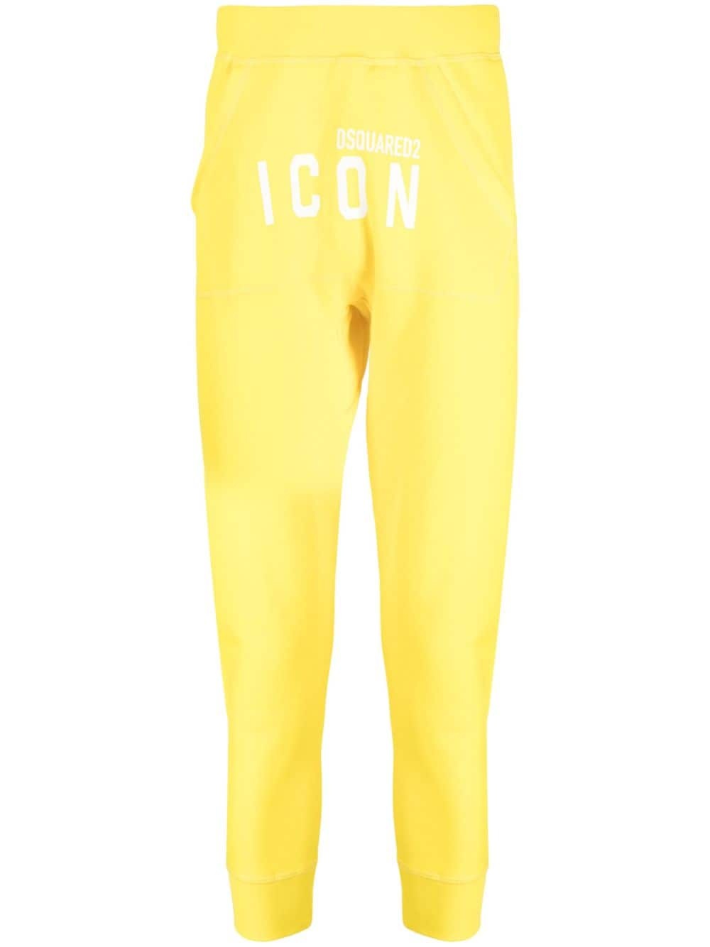 Icon-print track pants Highlights - Canary yellow - Cotton - Signature icon motif - Logo print to the front - Tapered leg - Elasticated waistband - Elasticated ankles - Slip pockets to the sides Made in Italy Composition Cotton 100% SIZE & FIT Model measurements Height 6 ft 2 in(1.87 m) Bust/Chest 34.25 in(87 cm) Hips 36.22 in(92 cm) Waist 29.52 in(75 cm) FittingInformation Designed for a slim tapered leg, offering a close fit that sits just away from the leg with a closer fit towards the ankle The elasticated waist allows for a comfortable fit Made from a midweight stretch fabric, this piece offers elasticity and flexibility when worn This piece fits true to size – take your usual size