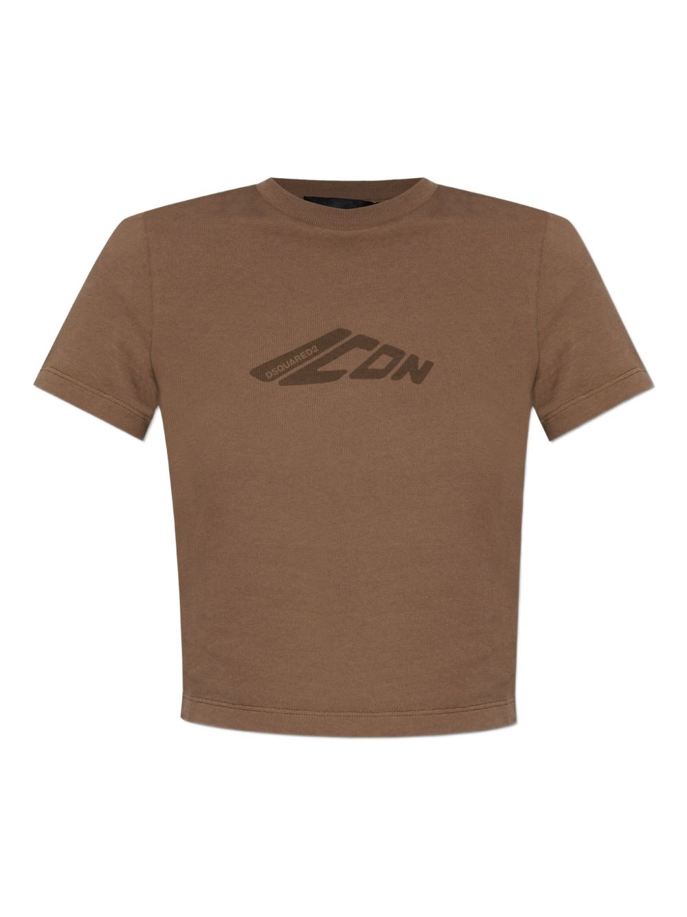 Icon T-shirt Highlights - Light brown - Crew neck - Short sleeves - Straight hem - Cropped Made in Italy Composition Cotton 100%