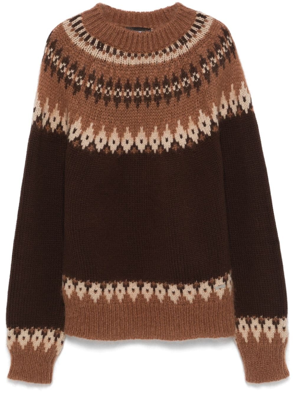 intarsia-patterned sweater Highlights - Brown - Virgin wool-mohair blend - Tricot knit - Patterned intarsia knit - Crew neck - Long sleeves - Ribbed cuffs and hem Made in Italy Composition Virgin Wool 75%, Mohair 12%, Polyamide 8%, Wool 5%