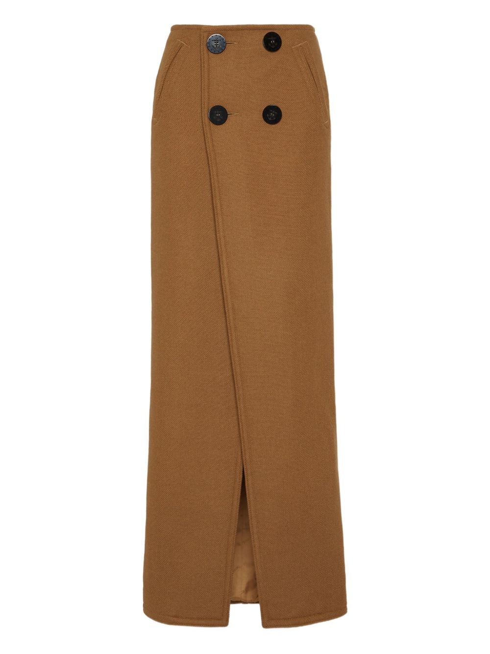 knitted maxi skirt Highlights - Brown - Double-breasted button fastening - Two rear flap pockets Made in Italy Composition Fabric 100% Washing instructions Read Manufacturer Guidelines