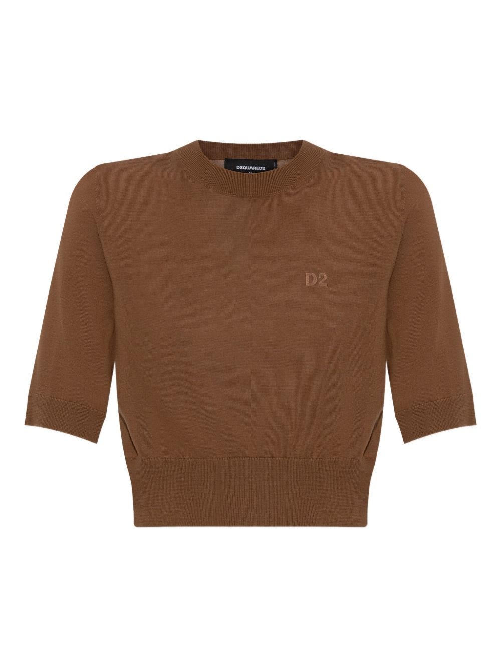 knitted T-shirt Highlights - Brown - Short sleeves - Ribbed crew neck - Side slit details - Embroidered logo Imported Composition Virgin Wool 100% Washing instructions Read Manufacturer Guidelines