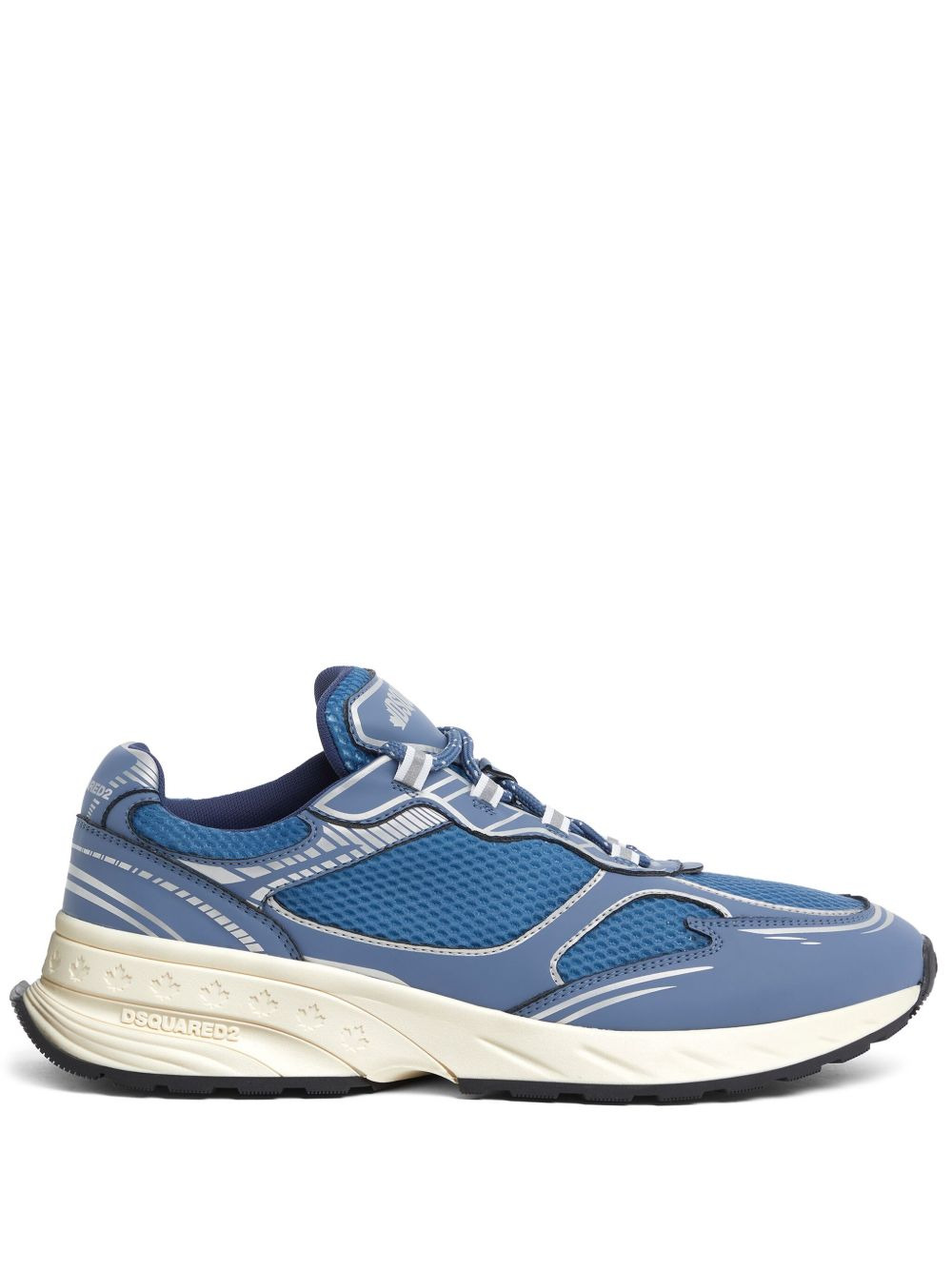 lace-up sneakers Highlights - Blue/silver-tone - Mesh panelling - Front lace-up fastening - Branded heel counter - Logo-print tongue - Branded insole - Ridged rubber sole Made in Italy Composition Lining: Polyamide 70%, Calf Leather 30% Outer: Polyester 70%, Polyurethane 30% Sole: Rubber 100%