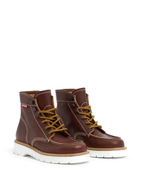 leather boots Highlights - Brown - Leather - Smooth grain - Front lace-up fastening - Contrast stitching - Mini logo tag - Rivet detailing - Round toe - Branded leather insole - Ridged rubber sole Imported Composition Lining: CALFSKIN 100% Outer: CALFSKIN 100% Sole: Synthetic Rubber 100%