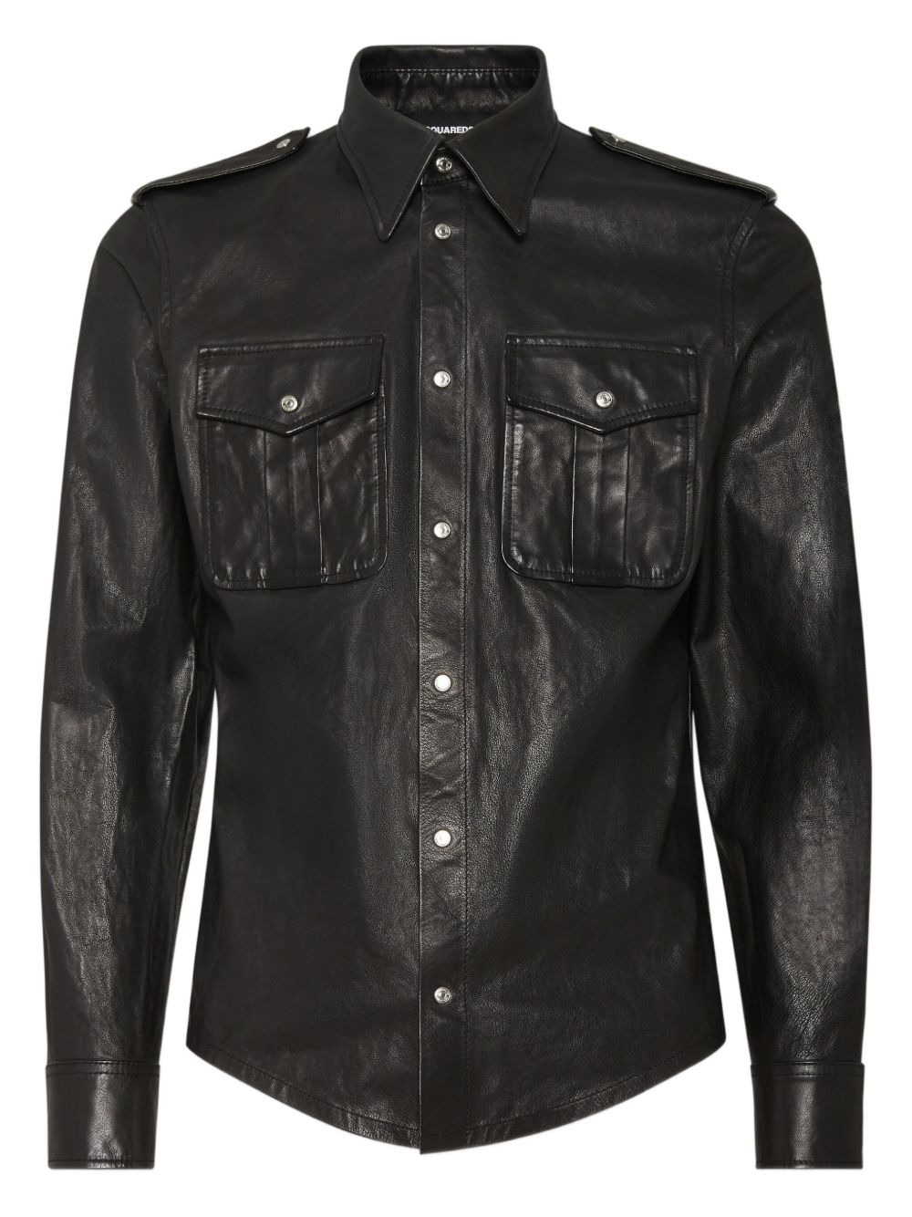 leather shirt Highlights - Black - Front button fastening - Chest flap pockets - Epaulettes - Buttoned cuffs Imported Composition Calf Leather 100% Washing instructions Read Manufacturer Guidelines