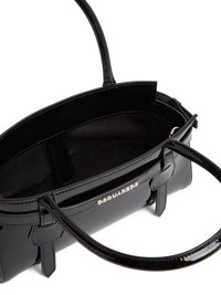 leather tote bag Highlights - Black - Open top - Adjustable detachable shoulder strap - Two rolled top handles - This piece comes complete with a protective dust bag. Imported Composition Outer: Patent Calf Leather 100%