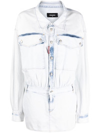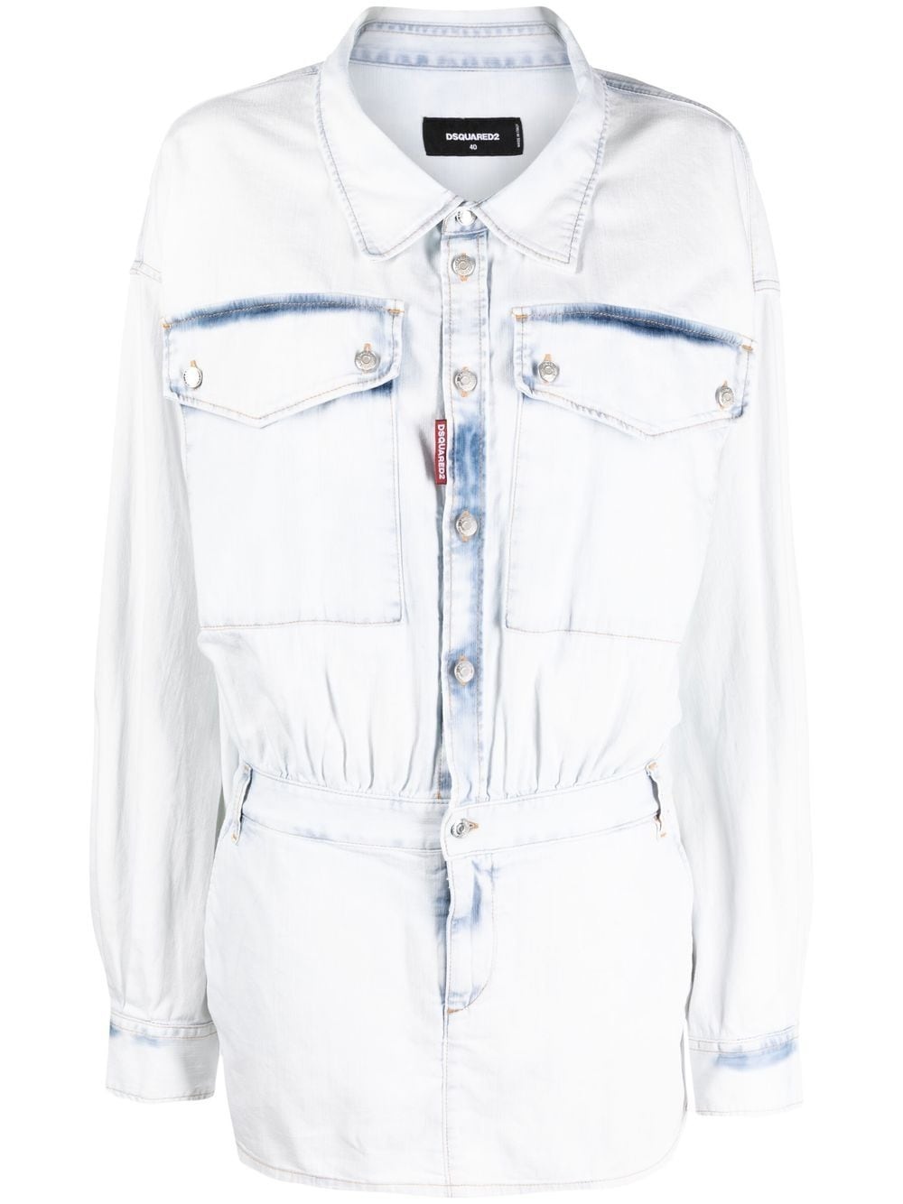 light wash denim minidress Known for their expert denimwear, Dsquared2 presents this minidress as part of their latest collection. Fabricated in Italy, it features a classic light wash alongside a signature red and white logo tab to the front which adds a branded finish to the long-sleeve silhouette. Highlights - Light blue - Stretch-cotton - Denim - Light wash - Two chest flap pockets - Front button fastening - Classic collar - Long sleeves - Thigh-length Made in Italy Composition Cotton 98%, Elastane 2% SIZE & FIT Model measurements Height 5 ft 10 in(1.77 m) Bust/Chest 32.67 in(83 cm) Hips 35.43 in(90 cm) Waist 23.62 in(60 cm) FittingInformation This piece fits true to size. We recommend you get your regular size Designed for a loose fit at the bust and waist with a close fit on the hips Made with a mid-weight stretch fabric Washing instructions Machine Wash