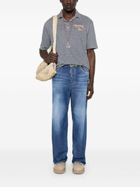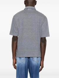 linen polo shirt Highlights - Navy blue - Short front button fastening - Short side slits - Embroidered slogan - Horizontal stripe pattern Made in Italy Composition Linen/Flax 100% SIZE & FIT Model measurements Height 6 ft 0 in(1.84 m) Bust/Chest 37.79 in(96 cm) Hips 37 in(94 cm) Waist 31.49 in(80 cm) FittingInformation Designed for a regular fit, this polo shirt offers a comfortable loose fit throughout the body Made from a midweight non-stretch fabric, this piece offers minimal elasticity when worn