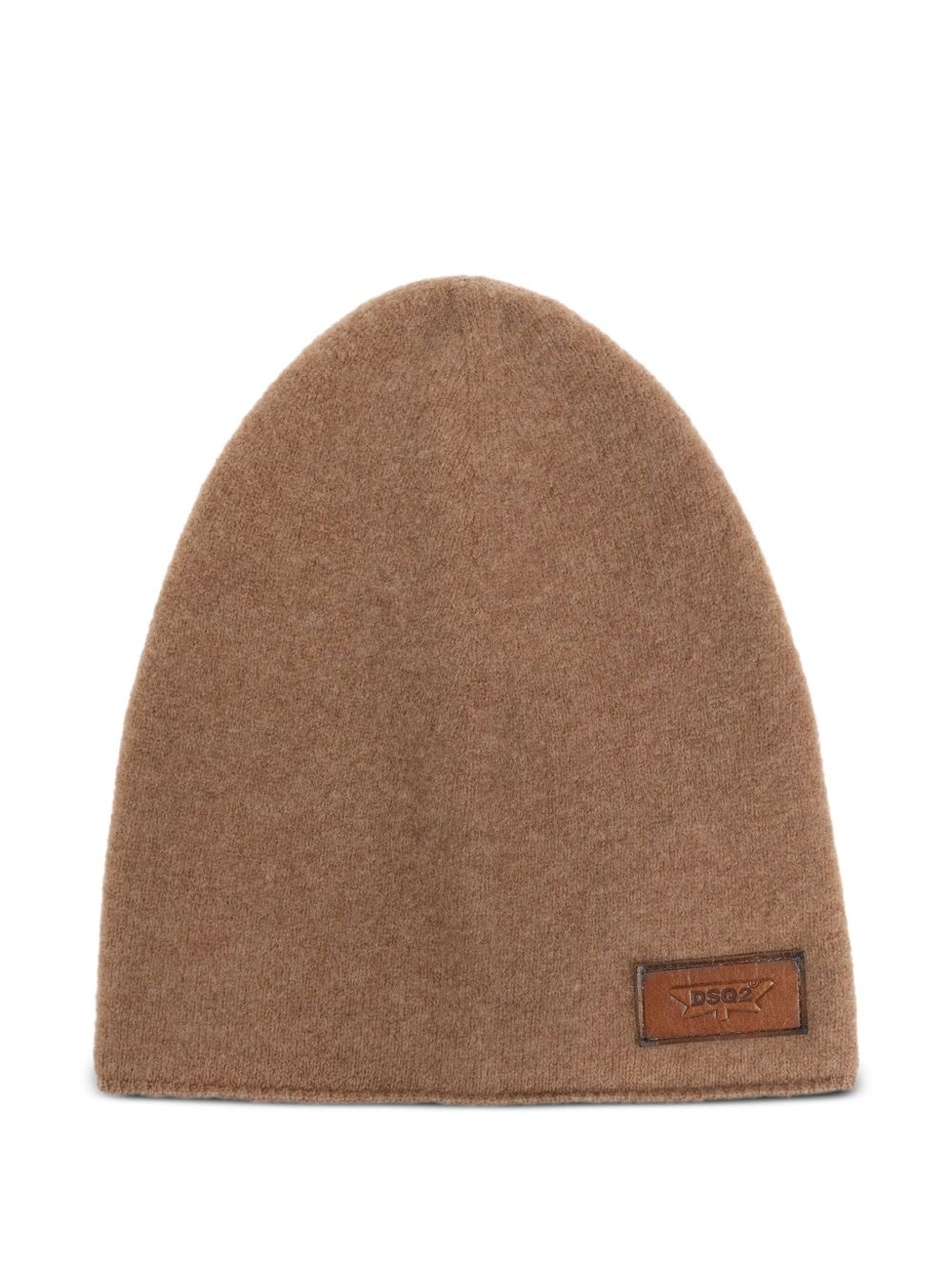 logo-applique beanie Highlights - Brown - Logo patch - Soft knit - Tonal stitching Made in Italy Composition Wool 100%