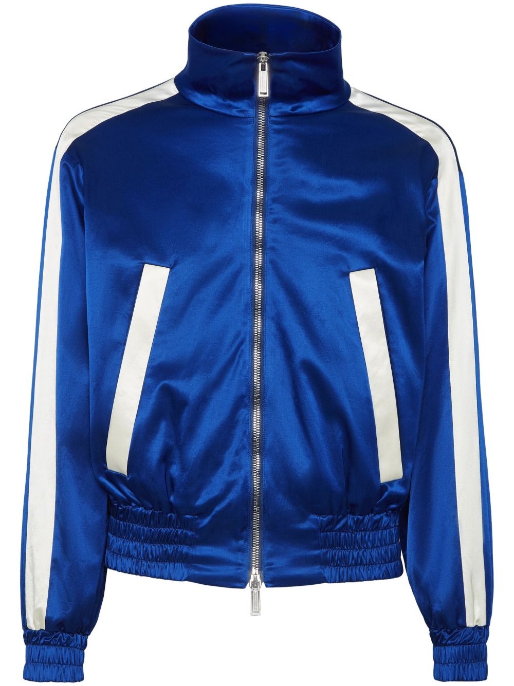 logo applique track jacket Highlights - Royal blue - Cotton blend - Applique logo to the rear - Contrasting trim - Mock neck - Front two-way zip fastening - Two front welt pockets - Long sleeves - Ribbed elasticated cuffs and hem Made in Italy Composition Cotton 52%, Viscose 43%, Spandex/Elastane 5%