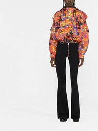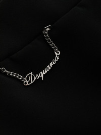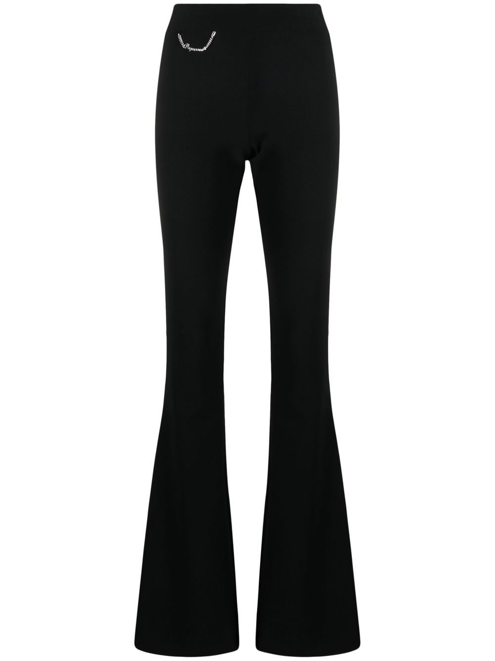 logo-chain flared trousers Presented in an all-black colourway, these flared trousers from Dsquared2 are instantly recognisable due to the logo chain to the side. The silver-tone hardware pops against the tonal design, offering a branded finish. Made in Italy Composition Polyurethane 100%, Polyester 100% SIZE & FIT Model measurements Height 5 ft 10 in(1.79 m) Bust/Chest 31.1 in(79 cm) Hips 35.03 in(89 cm) Waist 24.01 in(61 cm) FittingInformation This piece fits true to size. We recommend you get your regular size Designed to be fitted at the waist and through the thigh, loose from the knee Made with a mid-weight fabric Washing instructions Dry Clean Only